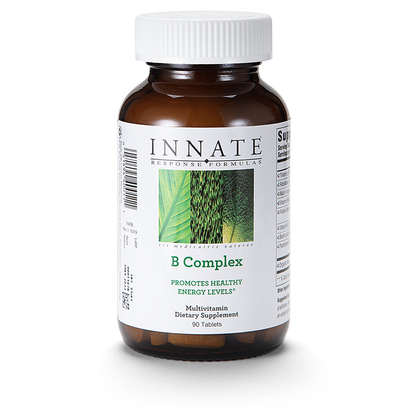 B Complex with all eight B vitamins in whole food form from Innate Response is a powerful vitamin B supplement containing a balanced ratio of B vitamins delivered with nourishing whole foods. B vitamins are important for several functions in the body.