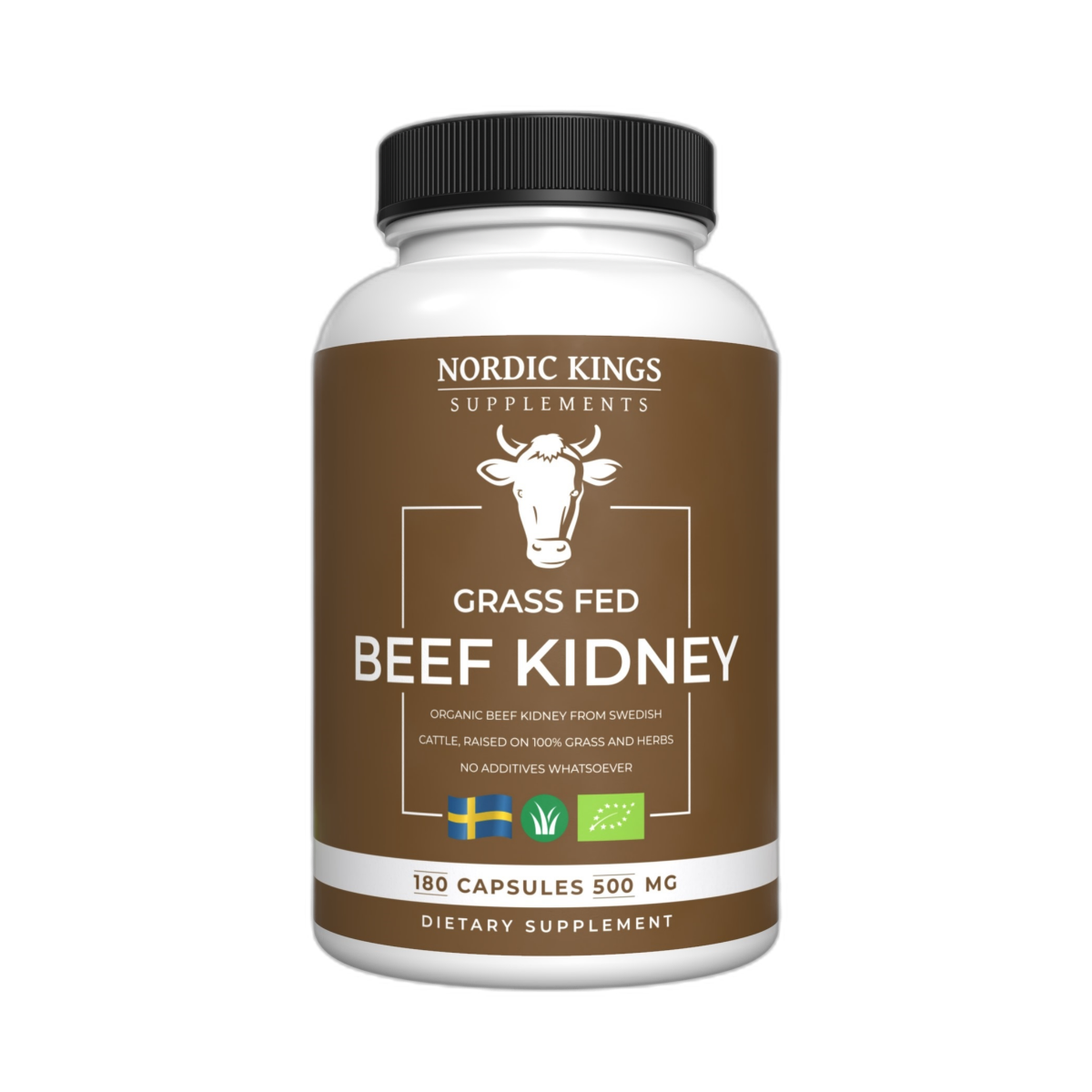 100 % Grass fed beef kidney from Swedish organic certified animals contains organic kidney and nothing else. The animals are raised on 100% grass and herbs and 0 % grains. 100 % Grass Fed & Organic Beef Kidney is gently freeze dried to maintain the best possible nutritional profile.