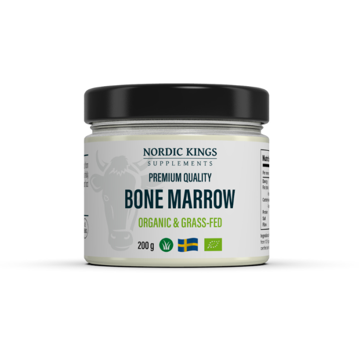100 % Grass fed bone marrow from Swedish organic certified animals. The animals are raised on 100% grass and herbs and 0 % grains. 100% Grass fed & Organic Bone Marrow is a pure fat with healthy fatty acids, a high amount of natural vitamin E but it also contains collagen, glycine, glucosamine, chondroitin.