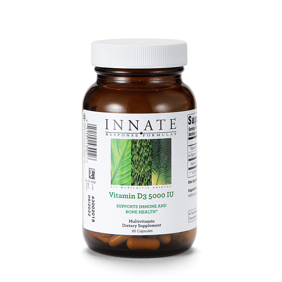 Vitamin D3 5000 IU (125 µg) with vitamin K1 & K2 from Innate Response is a premium high potency vitamin D3 supplement. Vitamin D3 is an essential vitamin and maintaining optimal levels daily can contribute to an overall sense of well-being. Vitamin D3 cholecalciferol is the more easily absorbed and utilized form of vitamin D. Innate Response pair it with vitamin K1 and K2, in a vegetarian capsule, to support optimal calcium absorption and distribution.